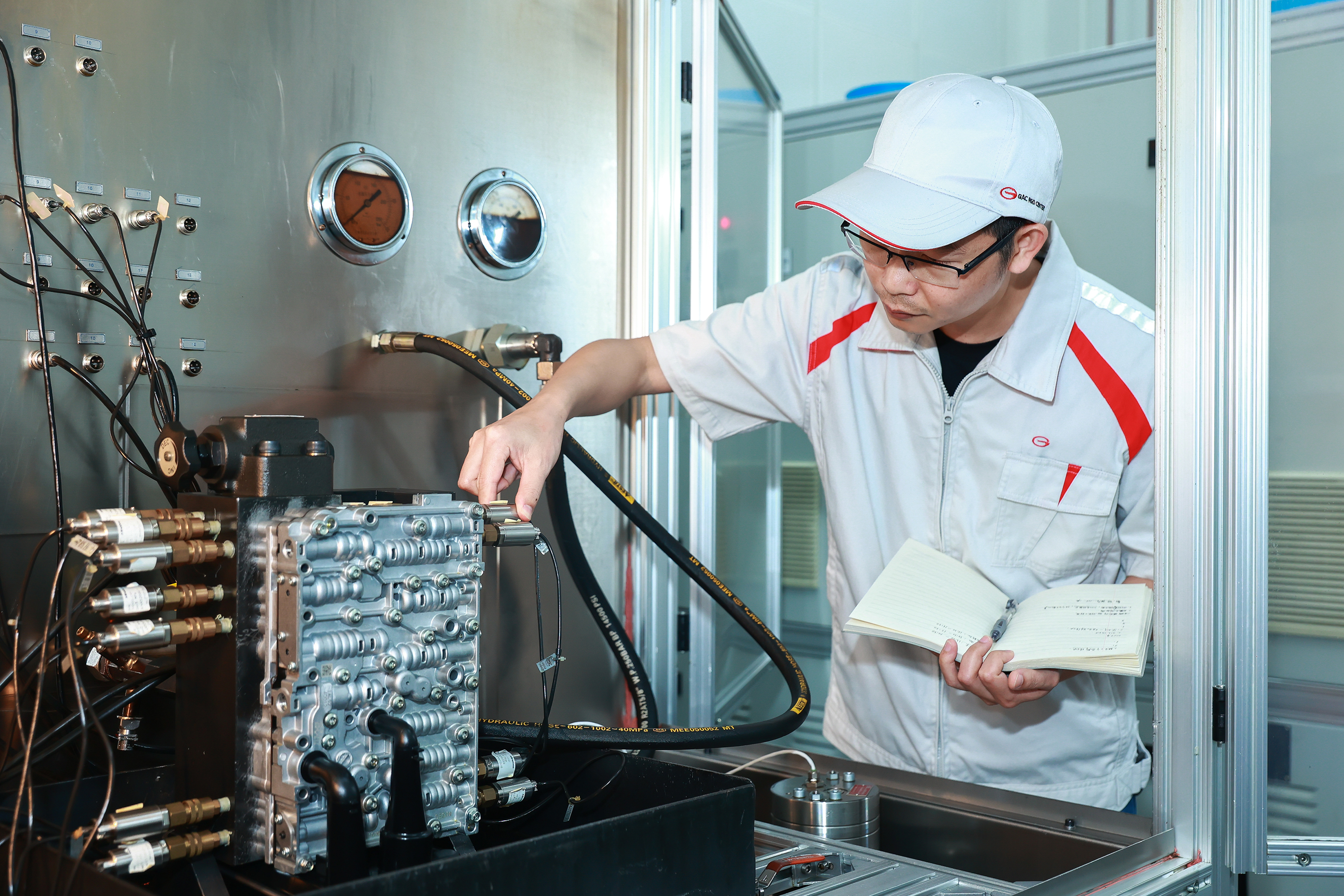 黄新志在进行液压模块台架测试
