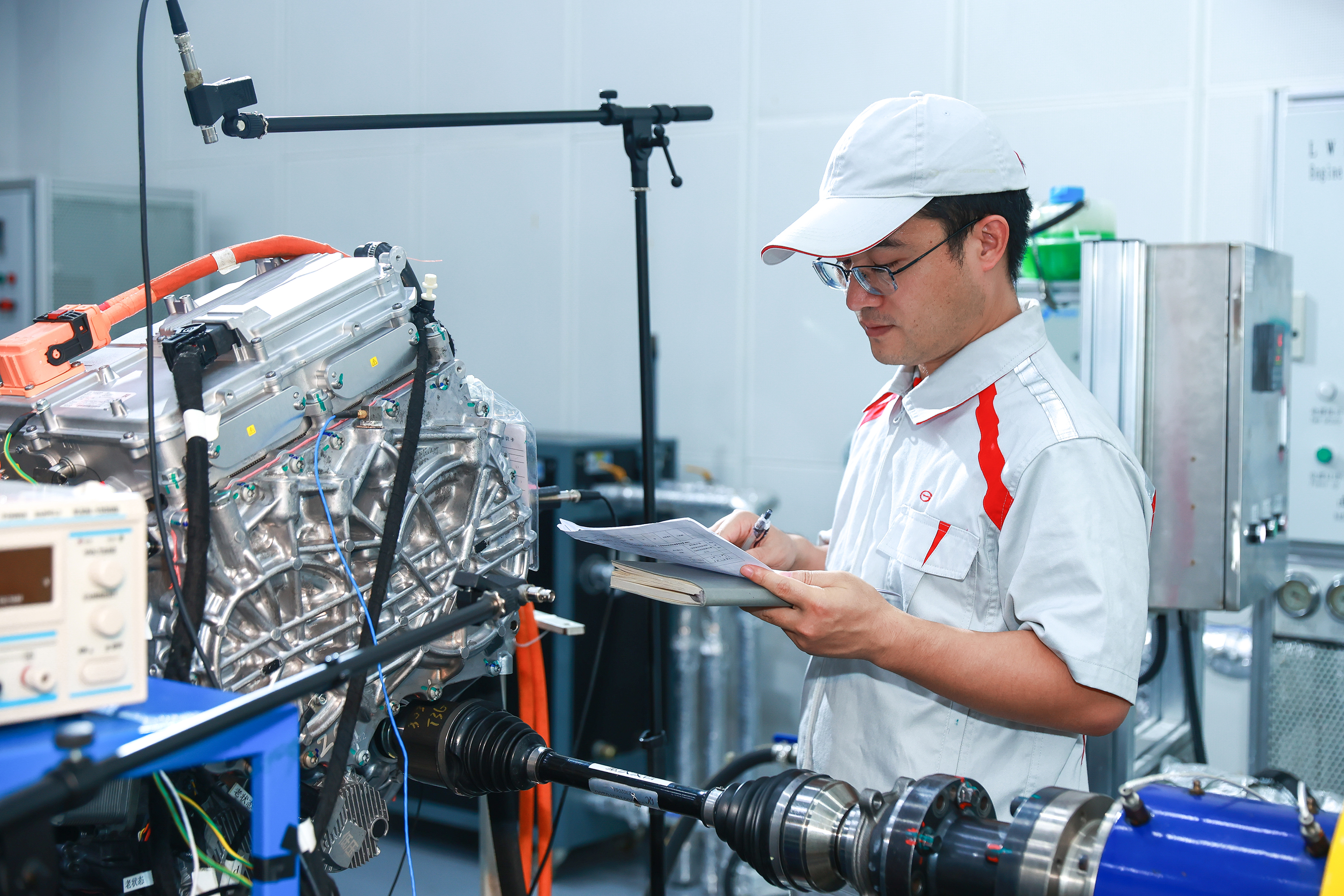 周文太在现场确认台架试验数据
